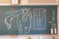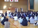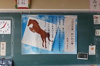 全校朝会では、午年にちなんで「努力」「前進」「挑戦」の意味から