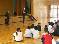 警察の方にお願いし、不審者が来たときの対応と児童の避難の仕方について