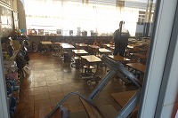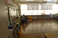 児童は、教室に入れないようにバリケードを作り、
